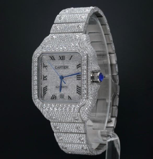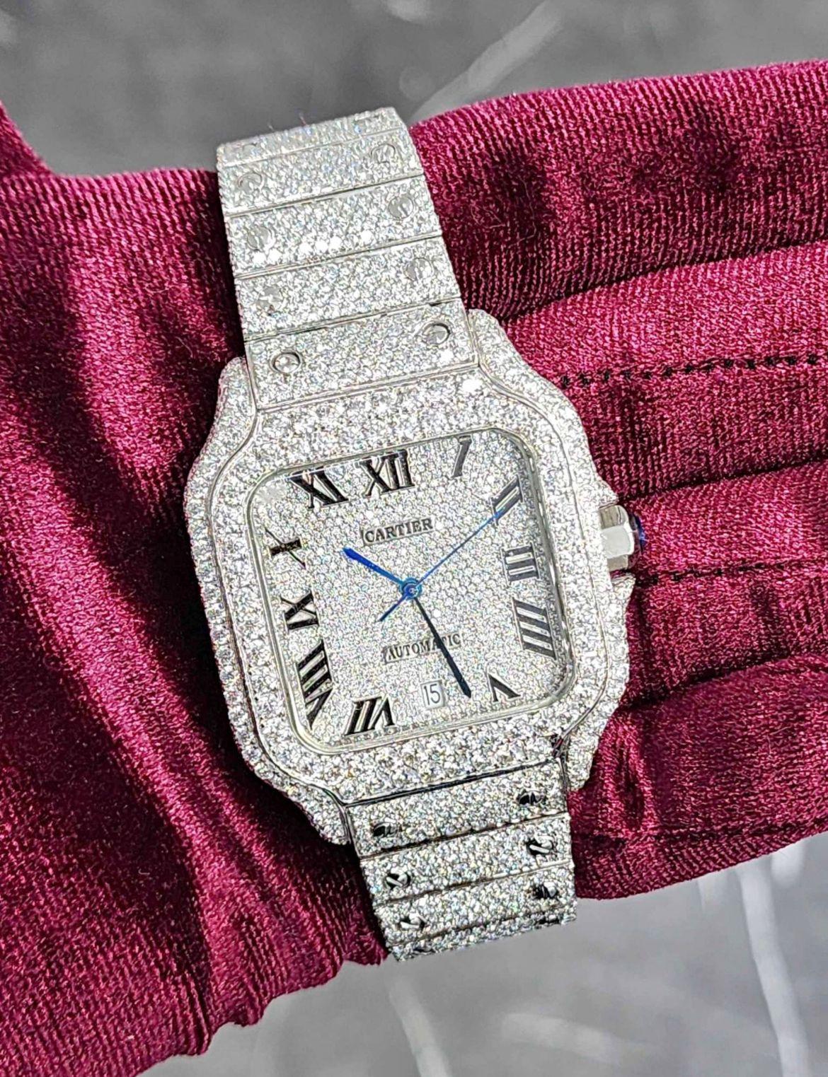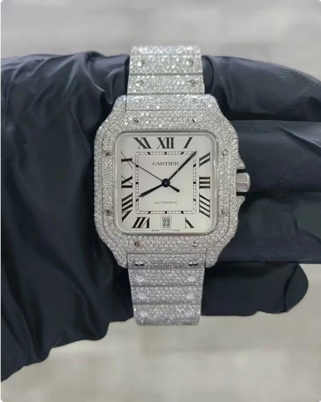 Unveil pure luxury with the Cartier VVS Moissanite Diamond Watch, masterfully crafted with 3690 individual VVS Moissanite stones. Each stone delivers unmatched sparkle and brilliance, totaling 43CR 35Sent of radiant shine.