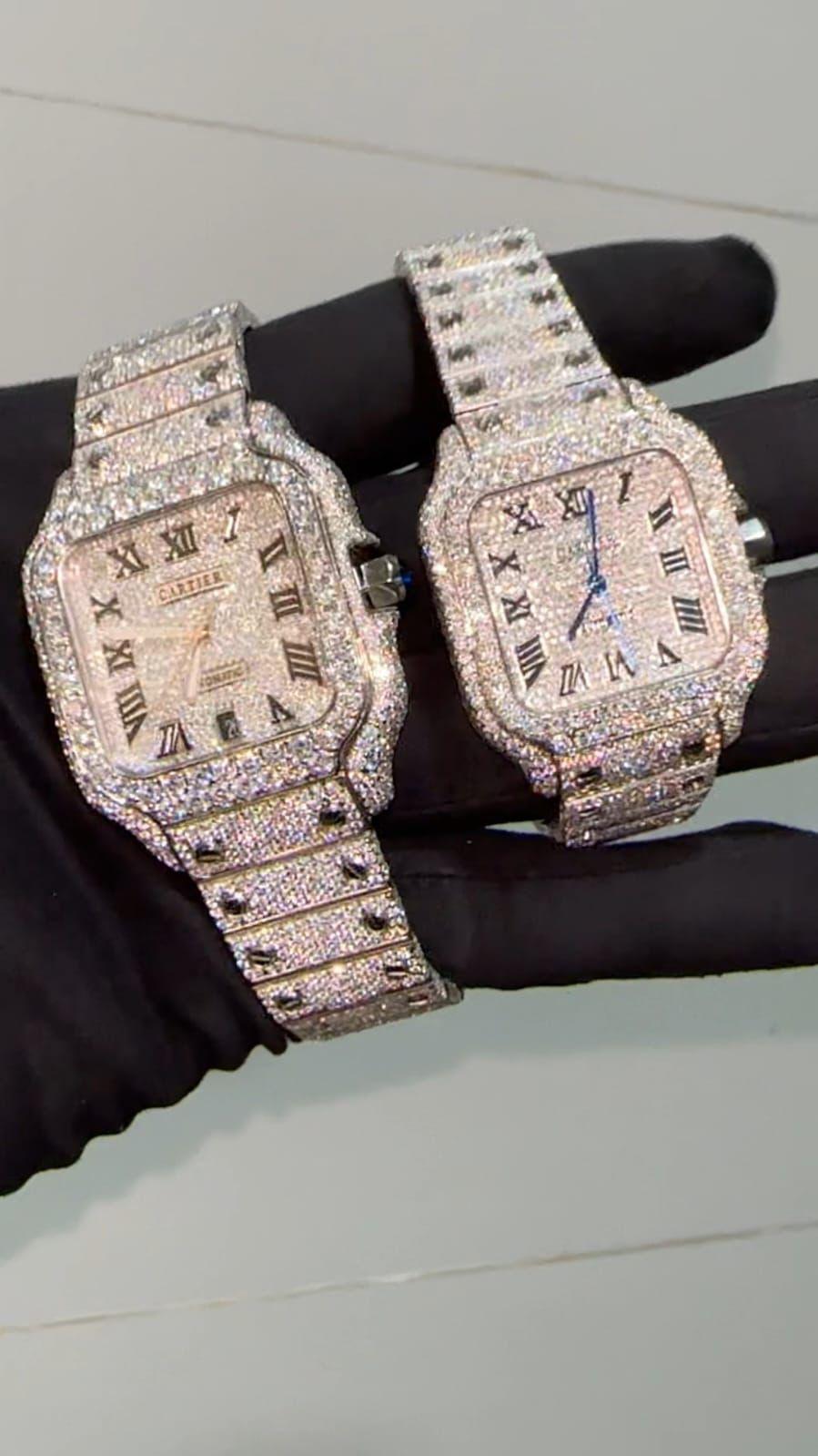 Unveil pure luxury with the Cartier VVS Moissanite Diamond Watch, masterfully crafted with 3490 individual VVS Moissanite stones. Each stone delivers unmatched sparkle and brilliance, totaling 41CR 85Sent of radiant shine.