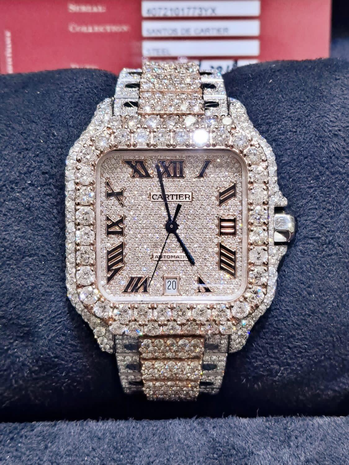 Unveil pure luxury with the Cartier VVS Moissanite Diamond Watch, masterfully crafted with 3490 individual VVS Moissanite stones. Each stone delivers unmatched sparkle and brilliance, totaling 45CR 89Sent of radiant shine.